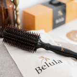 Belula Boar Bristle Round Brush for Blow Drying Set. Round Hairbrush With Small 2" Wooden Barrel. Hairbrush Ideal to Add Volume and Body. Free 3 x Hair Clips & Travel Bag.