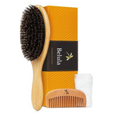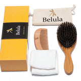 Belula 100% Boar Bristle Hairbrush Set (Large). Soft Natural Bristles for Thin and Fine Hair. Restore Shine and Texture. Wooden Comb, Travel Bag and Spa Headband Included!